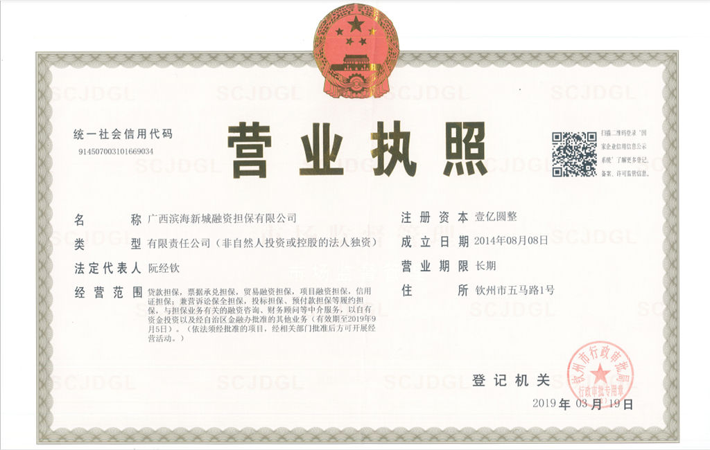 廣西濱海新城融資擔保有限公司順利完成公司名稱變更工作