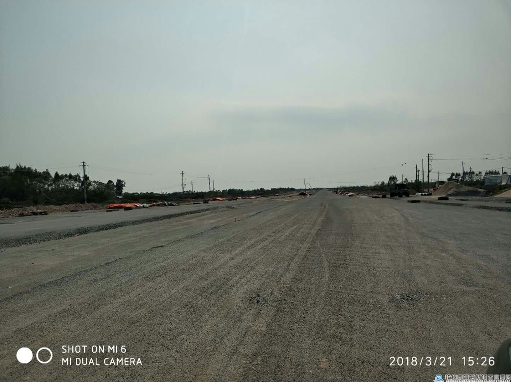 該項目于2017年2月22日進場施工,道路約1060m,路寬60m。主要建設(shè)內(nèi)容:道路工程、交通工程、排水工程、照明工程和綠化工程等。合同價59958018.42元,工期200日歷天,行車道及非機動車車道級配碎石鋪設(shè)約90%,k2+200及k1+900處過路管全包施工。雨、污水管網(wǎng)基本建成,行車道及非機動車車道級配碎石鋪設(shè)約90%。施工單位中余建設(shè)集團有限公司,監(jiān)理單位廣西益建工程建設(shè)監(jiān)理有限責(zé)任公司。