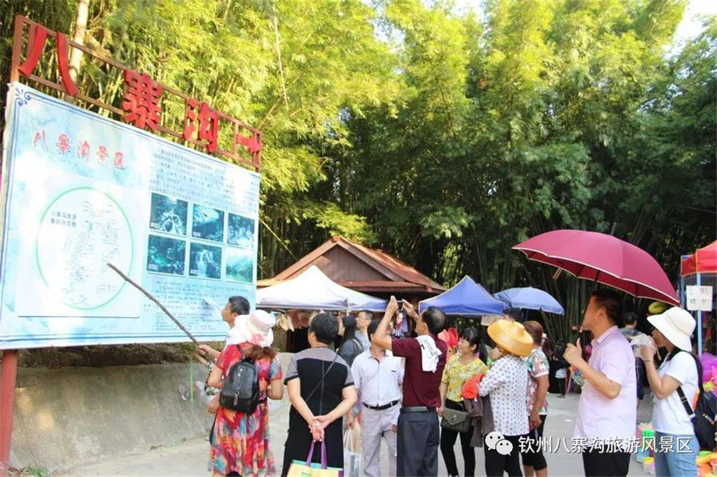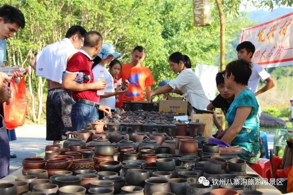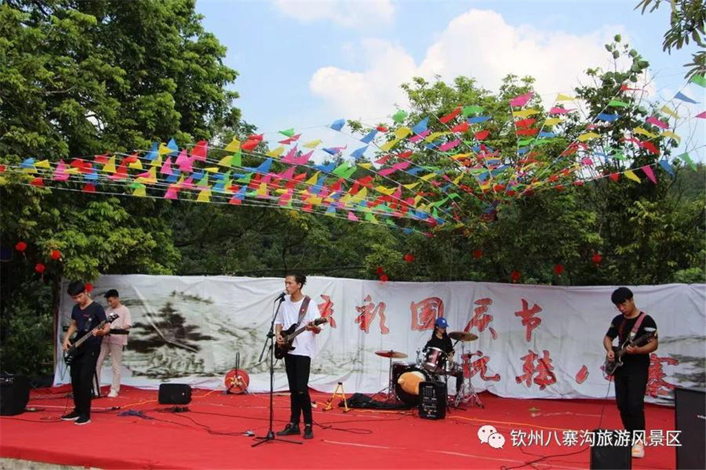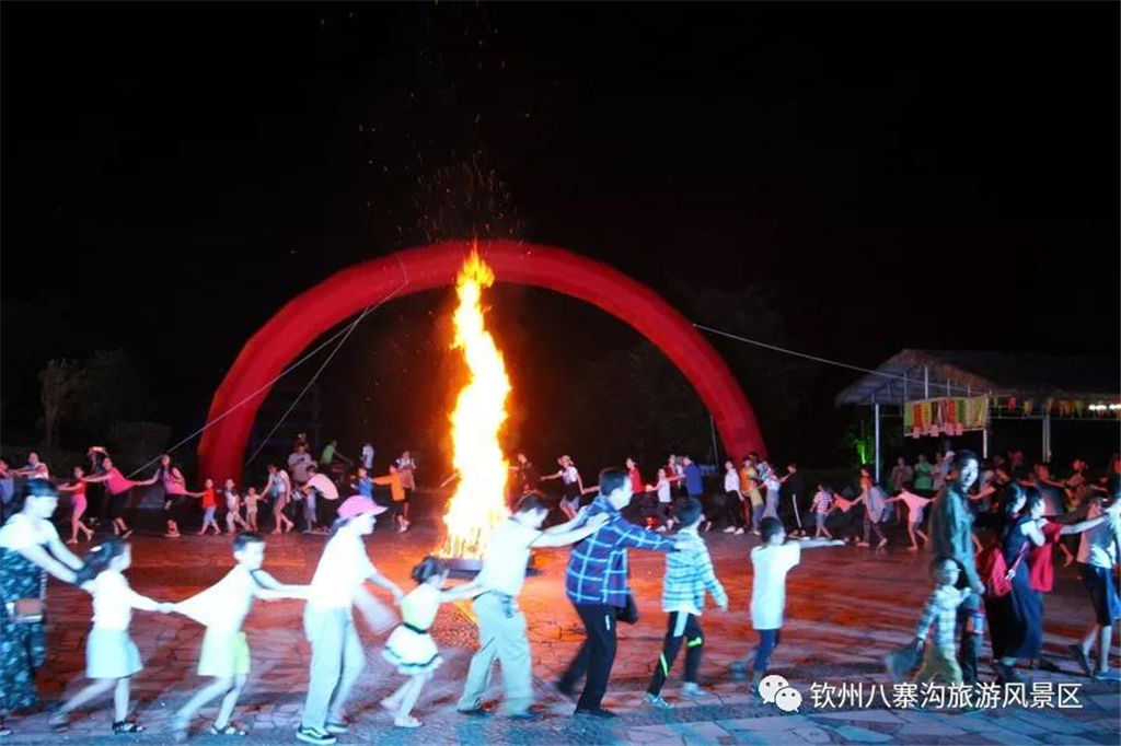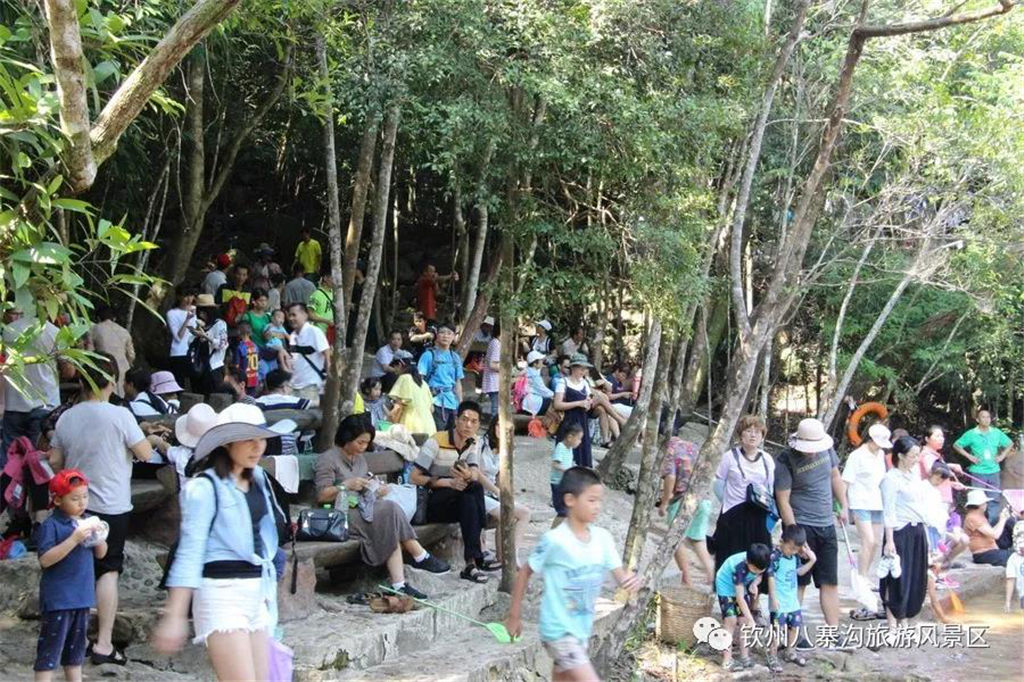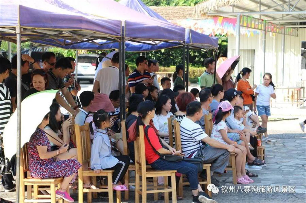 國慶期間景區舉辦以“炫彩國慶節,玩轉八寨溝”為主題的系列活動受到眾多游客親睞。游客們白天可以觀看精彩歌舞文藝演出,玩真人CS運動,品嘗各種各樣的特產美食,學制作欽州坭興陶,體驗欽州第一漂—八寨溝森林漂流,登山徒步暢游山水,呼吸新鮮空氣,天然水潭戲水其樂無窮,整個景區一片游客如織、喜樂融融的景象。