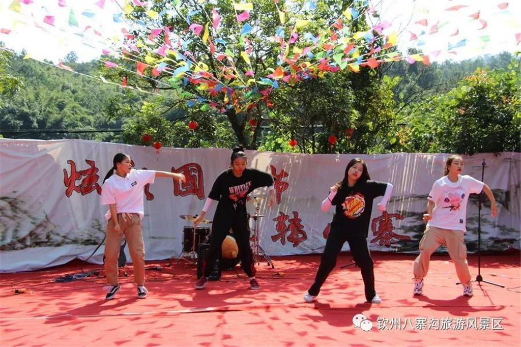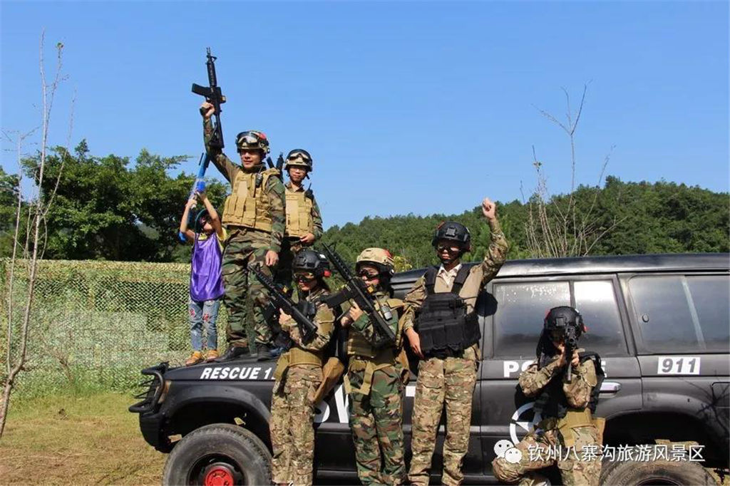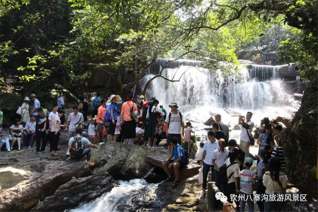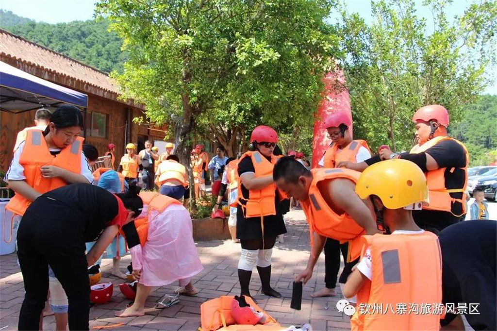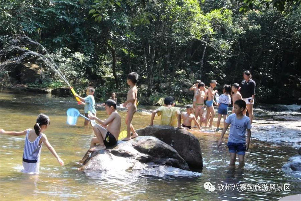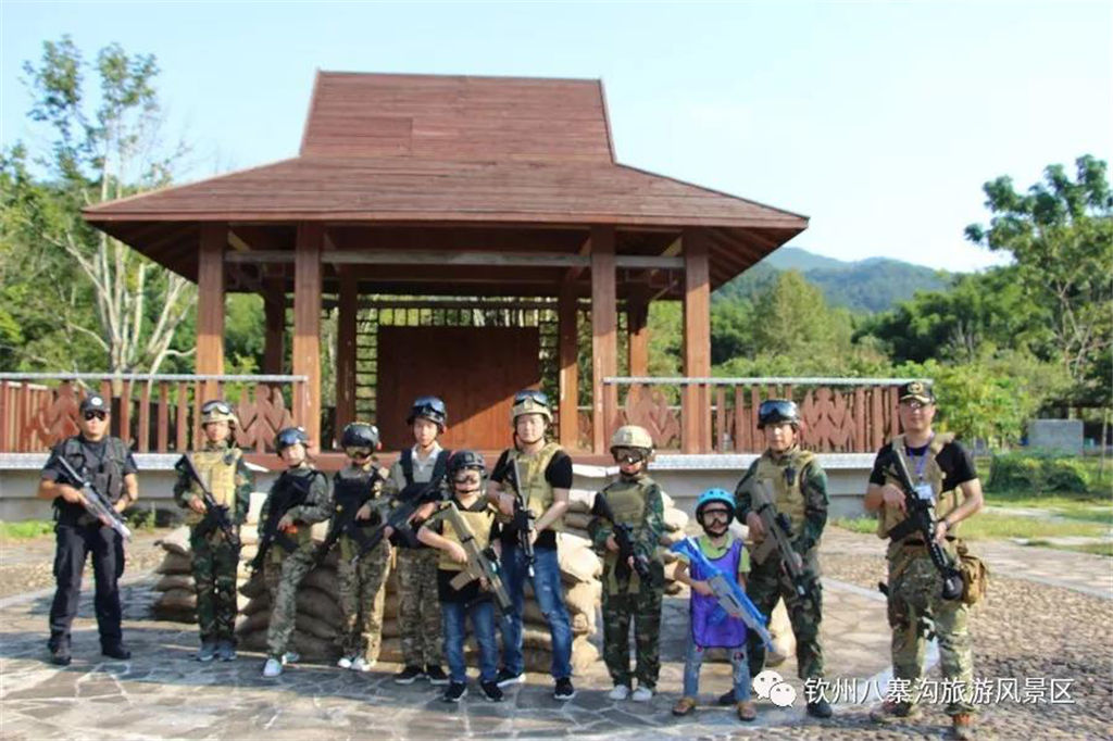 國慶期間景區舉辦以“炫彩國慶節,玩轉八寨溝”為主題的系列活動受到眾多游客親睞。游客們白天可以觀看精彩歌舞文藝演出,玩真人CS運動,品嘗各種各樣的特產美食,學制作欽州坭興陶,體驗欽州第一漂—八寨溝森林漂流,登山徒步暢游山水,呼吸新鮮空氣,天然水潭戲水其樂無窮,整個景區一片游客如織、喜樂融融的景象。