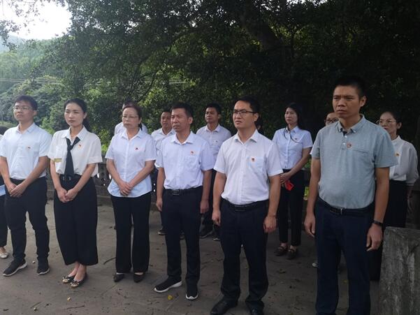 為教育引導廣大黨員筑牢黨員意識,珍惜黨員榮譽,加強黨性修養,牢記黨的宗旨和入黨初心,同時推動黨史學習教育與愛國主義教育相結合,教育引導廣大黨員干部厚植愛黨、愛國、愛社會主義情感,不忘崢嶸歲月,賡續革命薪火。7月23日,第一黨支部委員會組織黨員干部開展黨史學習教育系列活動暨“政治生日話黨史,黨的光輝照我心”主題黨日活動,打卡太平鎮那馱村革命老區紅色教育基地和泗峽坳抗日烈士墓,接受愛黨愛國主義教育。