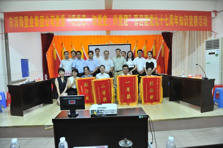 為慶祝中國共產黨成立97周年,引導全體黨員繼承和發揚黨的光榮傳統,鼓勵全體黨員深入學習黨章、黨史和“十九大”精神,2018年7月2日晚上20:00市濱海新城置業集團公司黨委組織全體黨員在六樓會議室舉辦“頌黨章、知黨史、興黨建”喜迎建黨九十七周年知識競賽活動。