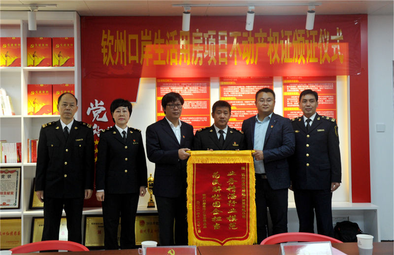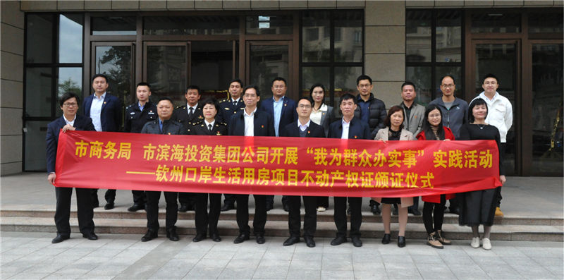 2021年11月23日上午,市商務(wù)局、市濱海投資集團(tuán)公司在市濱海投資集團(tuán)公司12樓黨員活動室聯(lián)合開展“我為群眾辦實事”主題實踐活動,舉行欽州口岸生活用房項目不動產(chǎn)權(quán)證頒證儀式。市濱海投資集團(tuán)公司黨委副書記卜玉聲同志主持會議,市商務(wù)局黨組書記、一級調(diào)研員王紹平同志出席會議并講話。