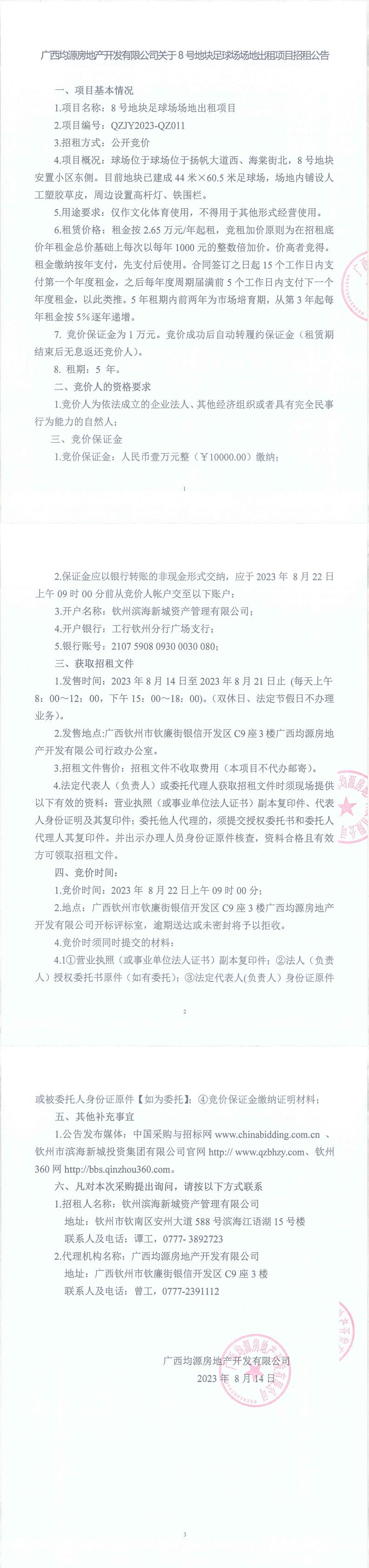 關于8號地塊足球場場地出租項目招租公告