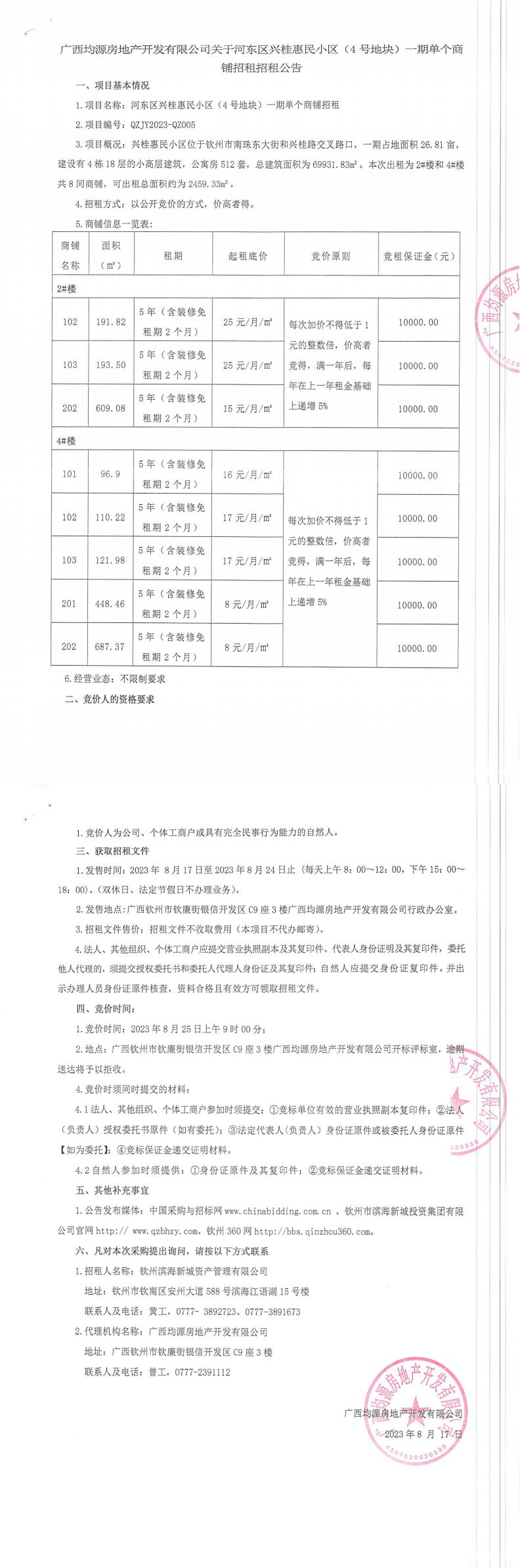 興桂惠民小區(4號地塊)一期單個商鋪招租招租公告