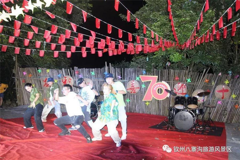 國慶期間景區(qū)舉辦以“炫彩八寨喜迎70華誕”為主題活動,受到眾多游客親睞。游客們白天可以觀看精彩歌舞文藝演出,賞彩虹風車展,玩真人CS運動,體驗欽州第一漂的八寨溝森林漂流,登山泡山泉潑水狂歡,徒步暢游原始森林的美景,呼吸天然氧吧里的新鮮空氣,整個景區(qū)呈現(xiàn)一片游客如織、喜樂融融的景象。