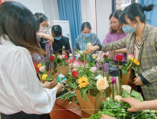 分享繪本閱讀之余,市濱海投資集團公司婦委還為全體女職工安排了一個賞心悅目的DIY插花活動。市濱海投資集團公司婦委主任米亮亮向女職工講解插花技巧,并現場演示。女職工們跟隨著講解選取花材、修剪枝葉,充分發揮想象力和創造力,創作出一件件滿意的插花作品。