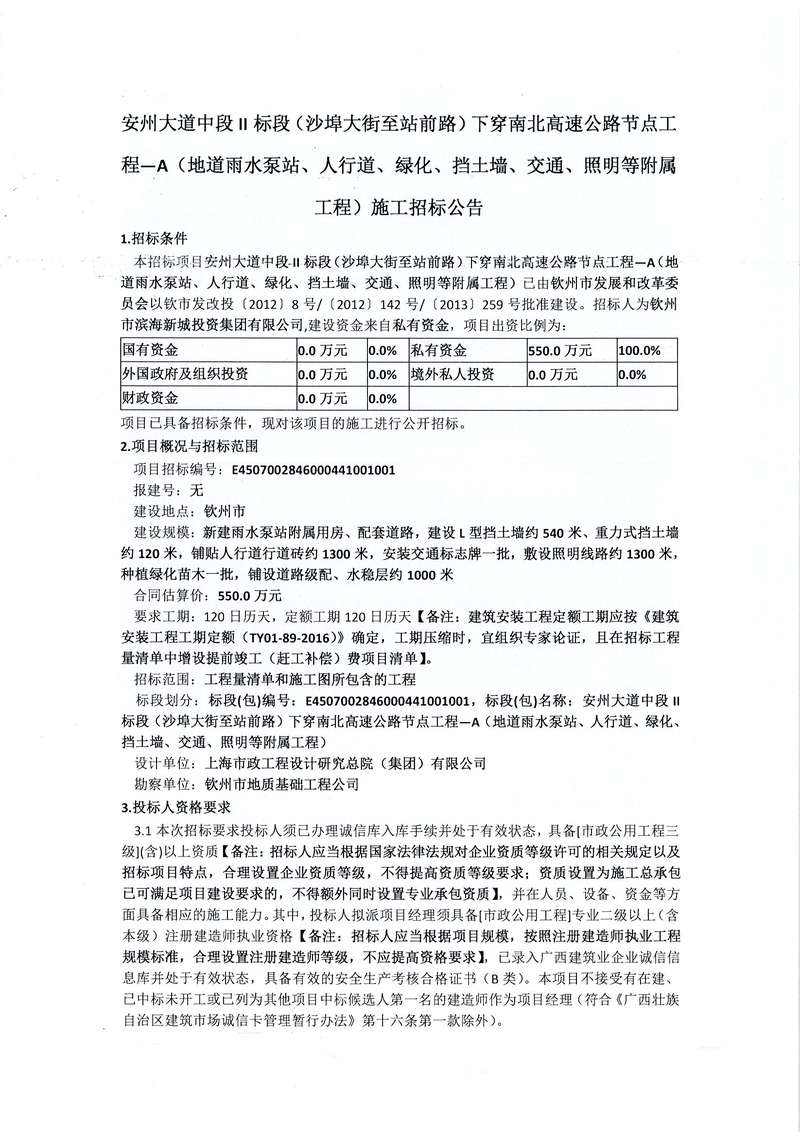欽州市兒童醫院配套道路建設項目—茶山路(局部)道路工程中標候選人公示