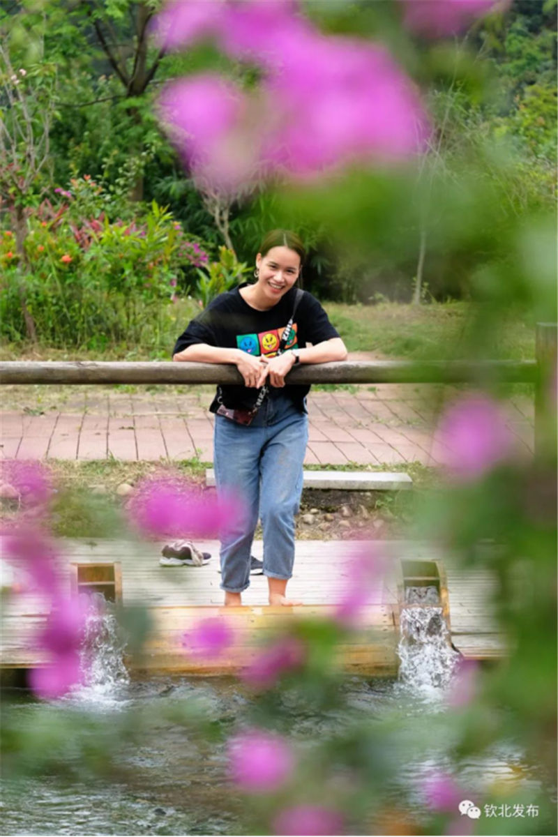 游客在梅園處戲水▽