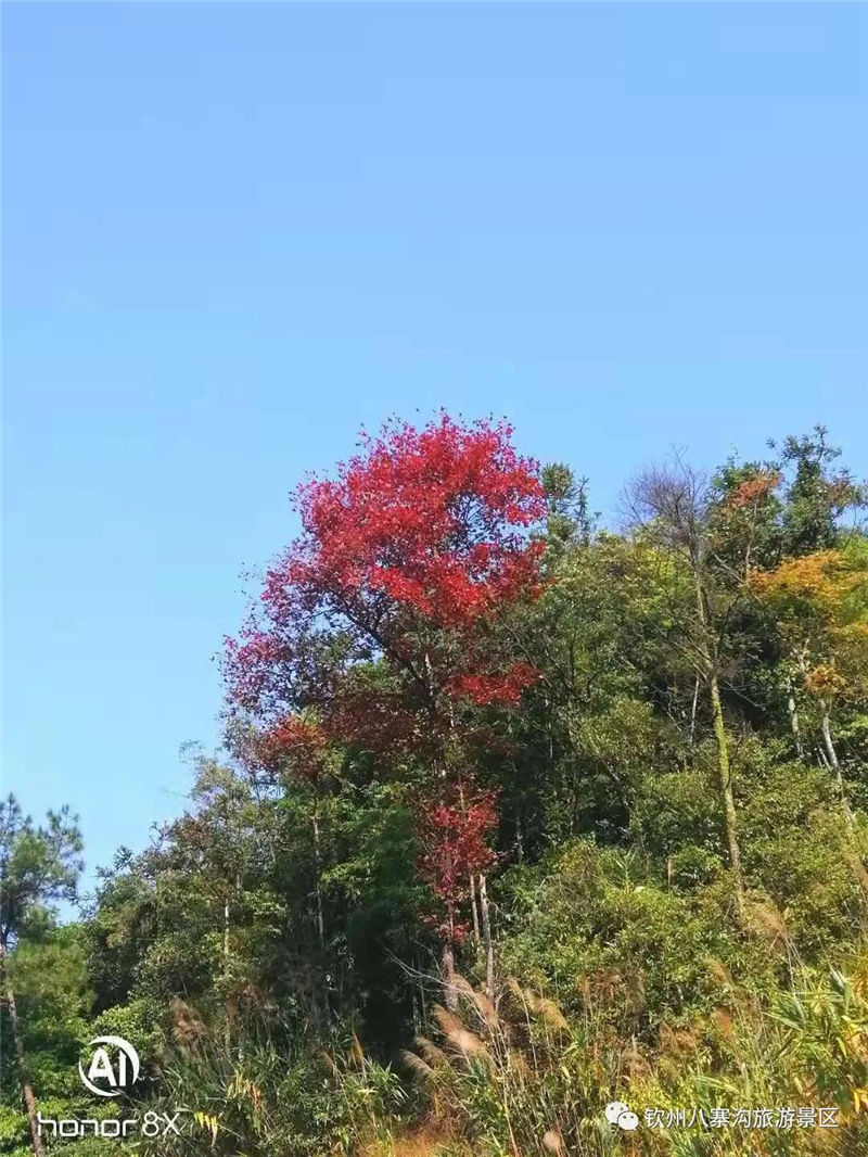 很多人都說,八寨溝好像是沒有冬天的。在北方雪花紛飛之時,八寨溝仍然綠意盎然,仍然溫暖如春。但似乎是預(yù)知了冷空氣的到來,八寨溝的楓樹也悄然披上紅裝,梅園盡頭,萬壽谷公路兩側(cè),俯首間,一樹紅葉,滿徑絳色;仰望中,層林盡染,天然畫卷。梅園盡頭,五孔橋旁,流水潺潺,一潭清水,楓葉輕浮,好一幅天然的臨水丹楓圖。