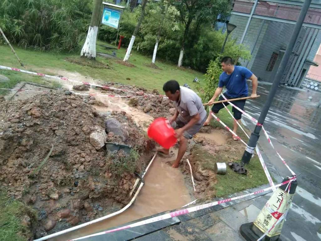 8月29日傍晚,蘭亭街一處深埋的水管爆裂,裂口較大,出水很急。我集團公司子公司資產公司接到電話后,立即安排人員到現場深入了解情況,聯系水務公司專業維修隊進行搶修,并及時通知蘭亭街商家做好儲水應急準備。