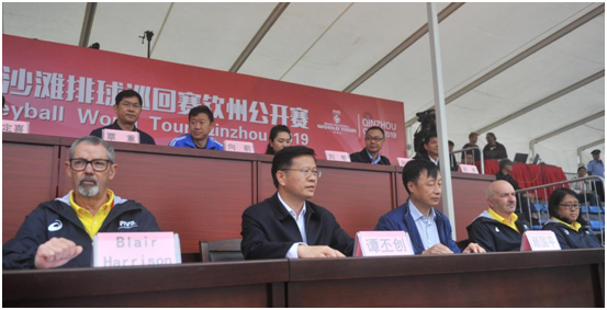 10月31日,2019年世界沙灘排球賽—欽州公開賽開幕式在比賽現場主賽場舉行,國際排聯技術代表布萊爾•哈里森、國家體育總局排球運動管理中心黨委書記顧國平講話,譚丕創市長致辭并宣布2019年世界沙灘排球巡回賽開幕。