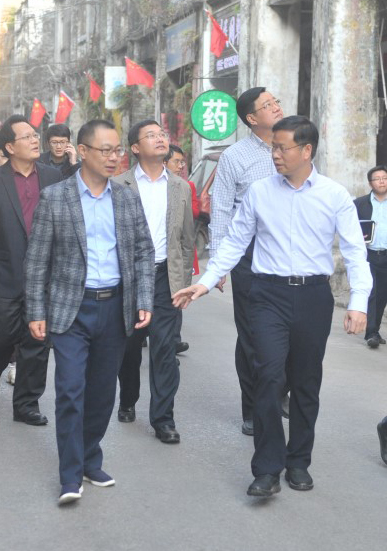 12月11日下午,市長譚丕創率隊到中山路、占鰲巷開展城市品質提升調研工作。集團公司董事長趙文博陪同調研。
