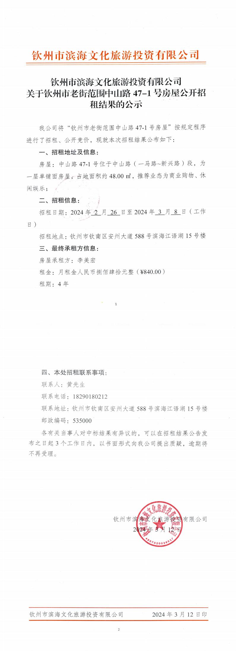 關于欽州市老街范圍中山路47-1號房屋公開招租的公示