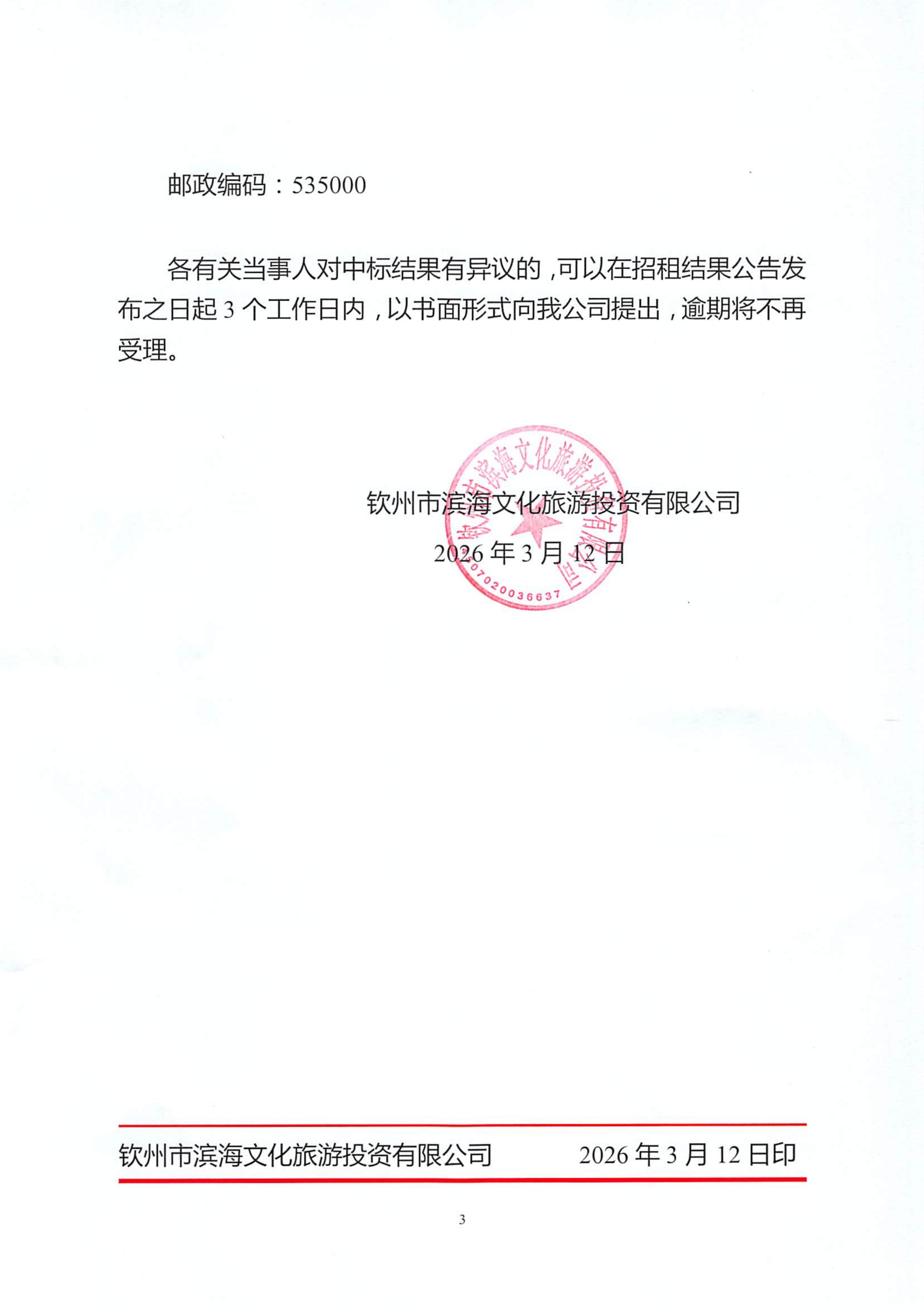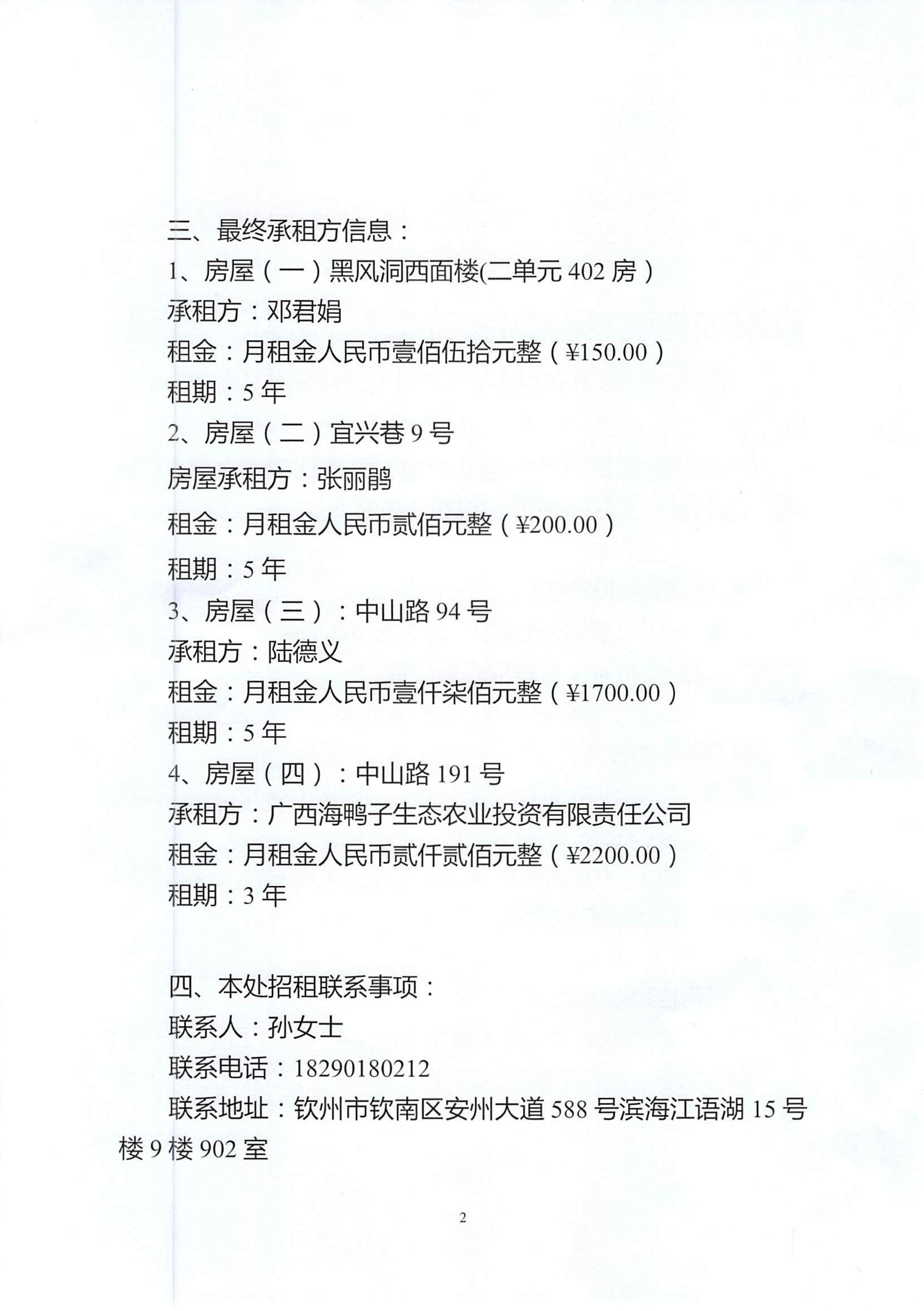 欽州市濱海文化旅游投資有限公司關于欽州市老街范圍4處房屋公開招租結果公示
