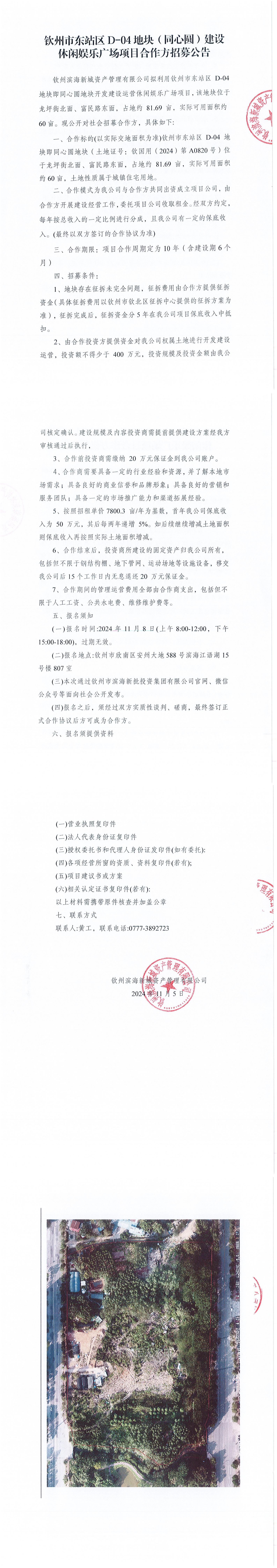 欽州市東站區D-04地塊(同心圓)建設休閑娛樂廣場項目合作方招募公告