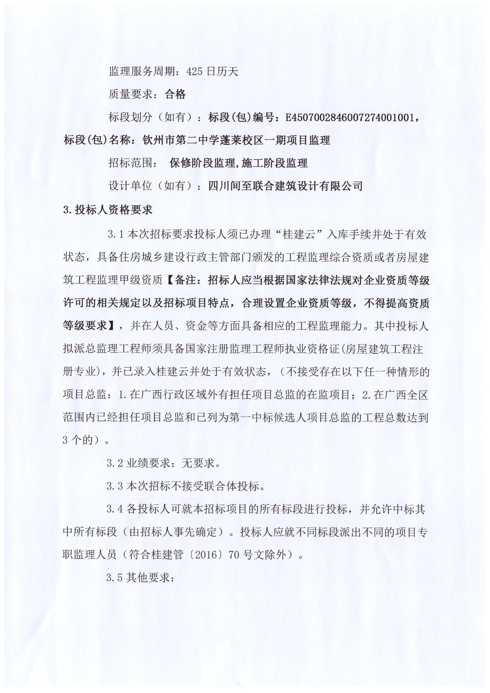欽州市第二中學蓬萊校區一期項目監理招標公告