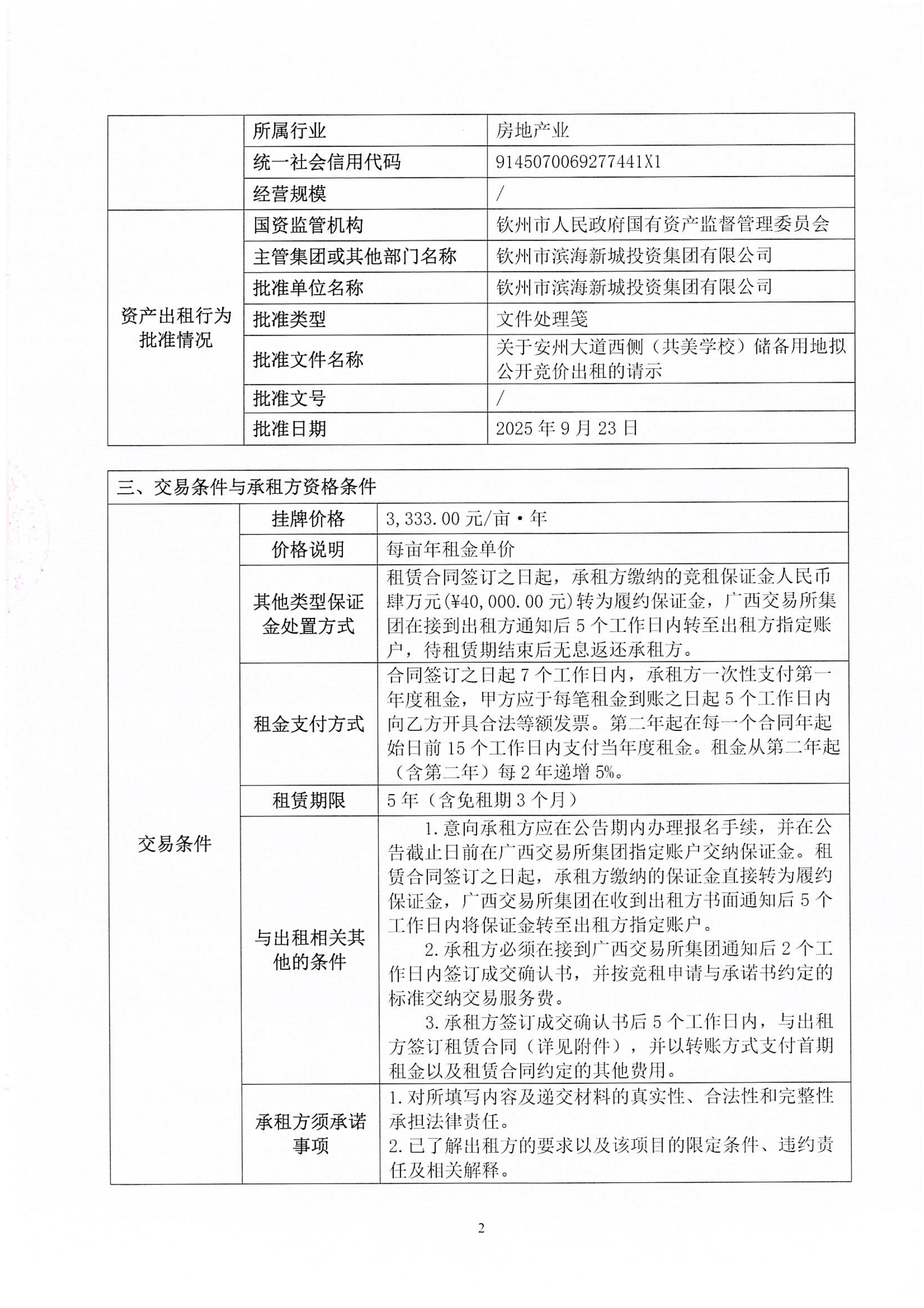 欽州市欽南區(qū)安州大道西側(共美學校)儲備用地公開招租項目