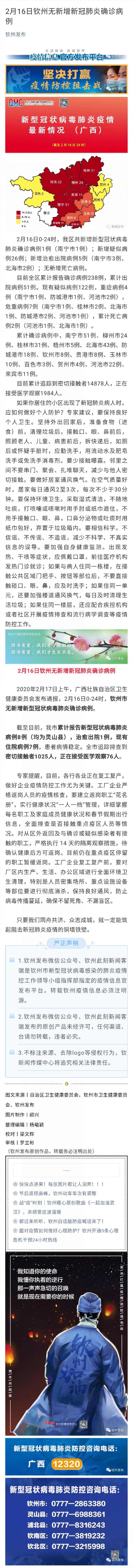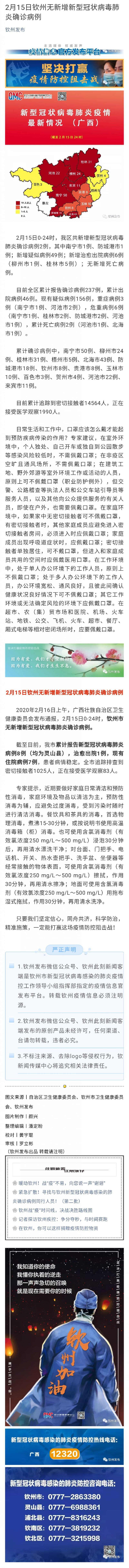 2月15日欽州無新增新型冠狀病毒肺炎確診病例