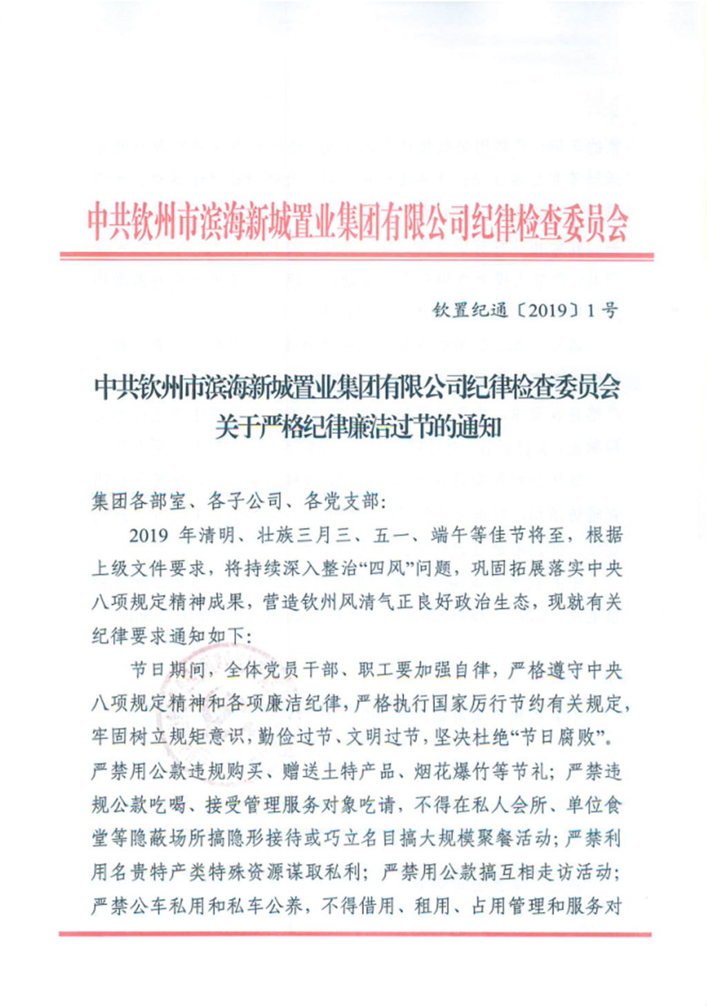 集團公司紀委印發了《關于嚴格紀律廉潔過節的通知》
