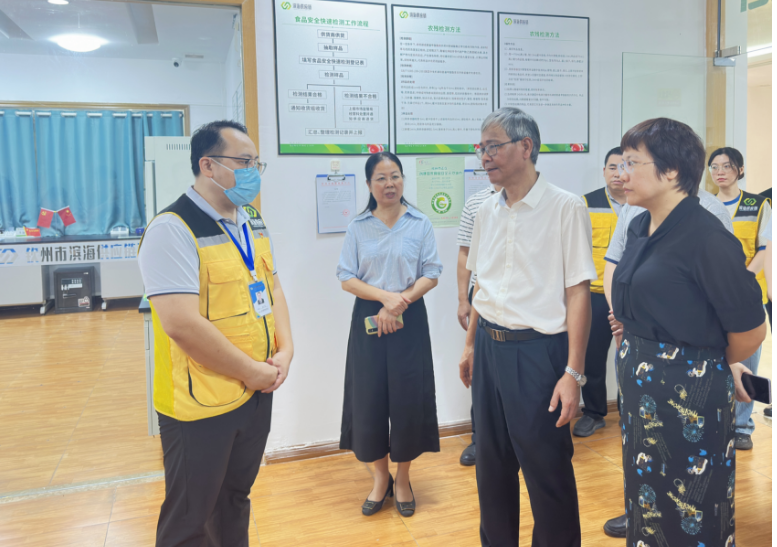 中秋、國慶佳節將至,2023年9月26日,市人民政府副市長謝立品到我集團公司下屬子公司欽州市濱海供應鏈有限公司開展節前食品安全檢查督導工作。謝立品詳細聽取了集團公司總工程師廖相榮、濱海供應鏈公司執行董事兼總經理吳廣明對各項業務的情況介紹,著重了解食材集采集配項目的運行情況,并對配送基地、檢測中心進行實地查看。