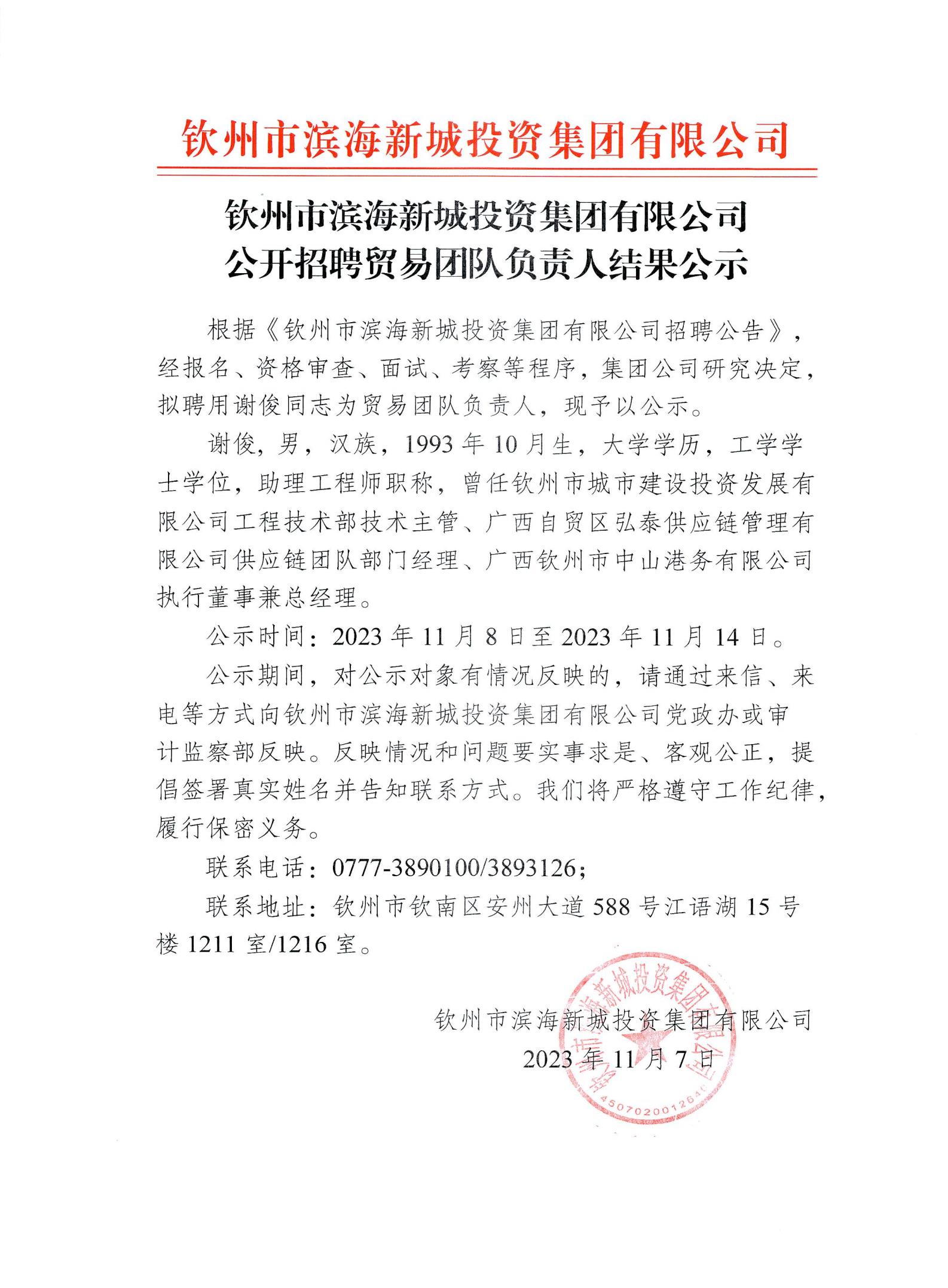 公開招聘貿易團隊負責人結果公示