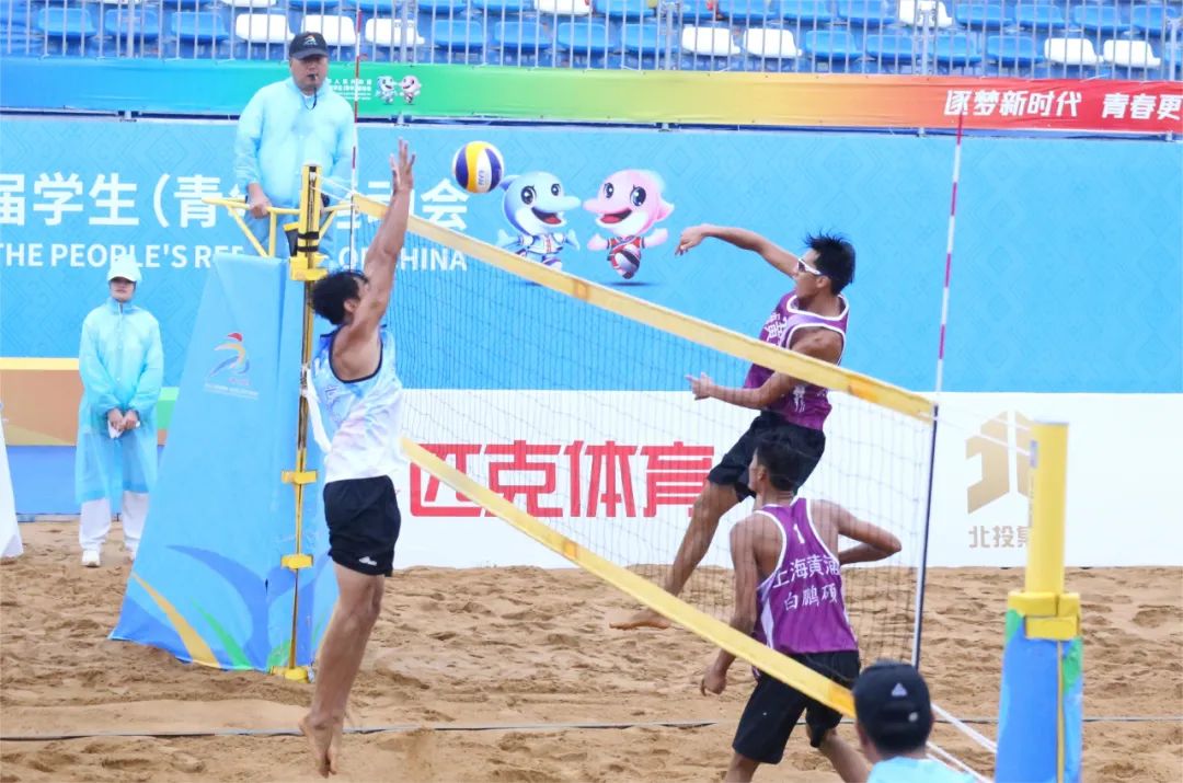 △學青會男子沙灘排球決賽。融媒體記者 肖鑫 攝