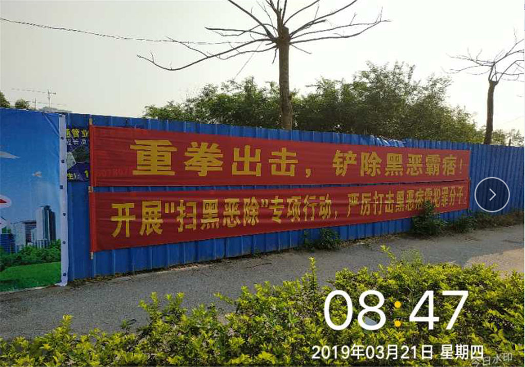 為抓好此項工作,通知各項目代表深入現場,并召集施工單位召開了專題動員會,并制定了具體的工作措施,如:張掛橫幅、微信群、qq群等渠道宣傳掃黑除惡行動。做到每個項目現場都在明顯位置張掛掃黑除惡標語的橫幅。