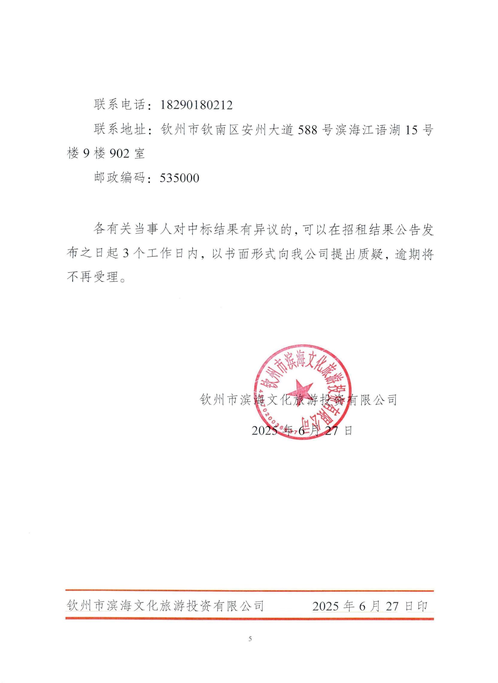 欽州市濱海文化旅游投資有限公司關于欽州市老街范圍二馬路43號房屋公開招租結果公示