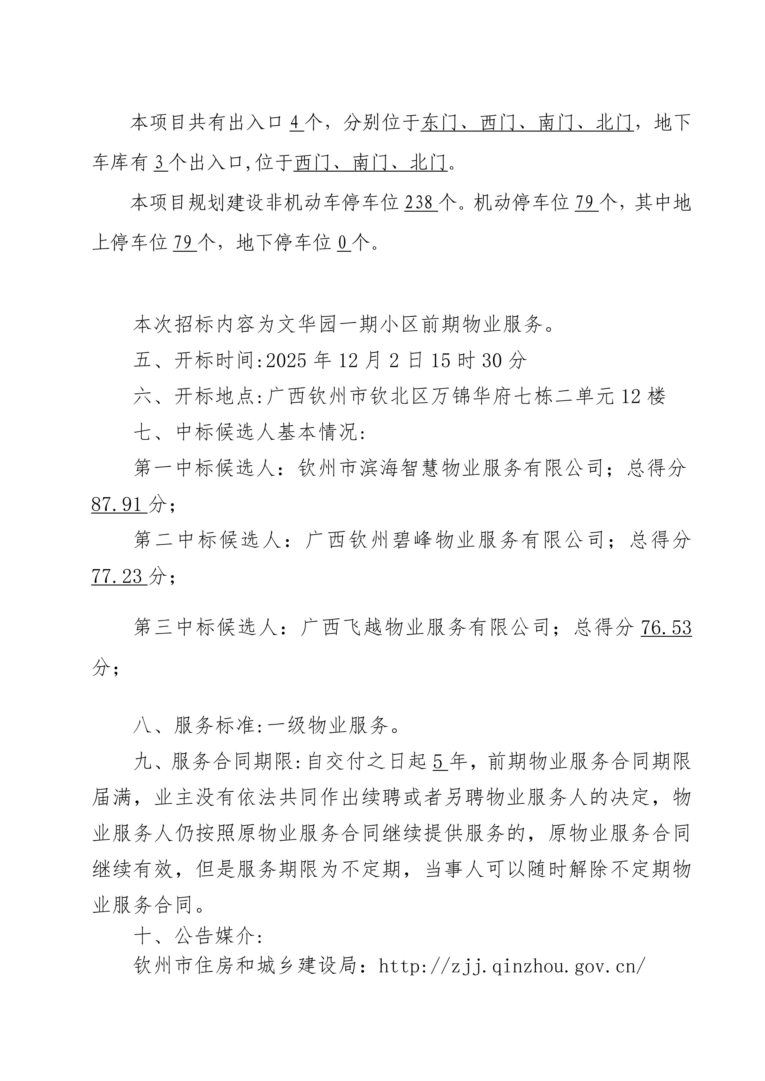 文華園一期小區前期物業管理招投標中標候選人公示信息