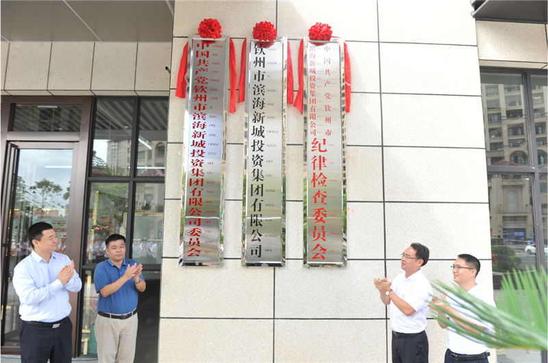 2021年8月12日,欽州市濱海新城投資集團有限公司新辦公場所揭牌儀式順利舉行。10點28分,市委常委、副市長姚永福,市國資委副主任陸世球,集團公司總經理黃兆明、黨委副書記卜玉聲,共同揭牌。紅幕徐徐落下,現場響起一片熱烈的掌聲。揭牌儀式由集團公司副總經理楊新棟主持。