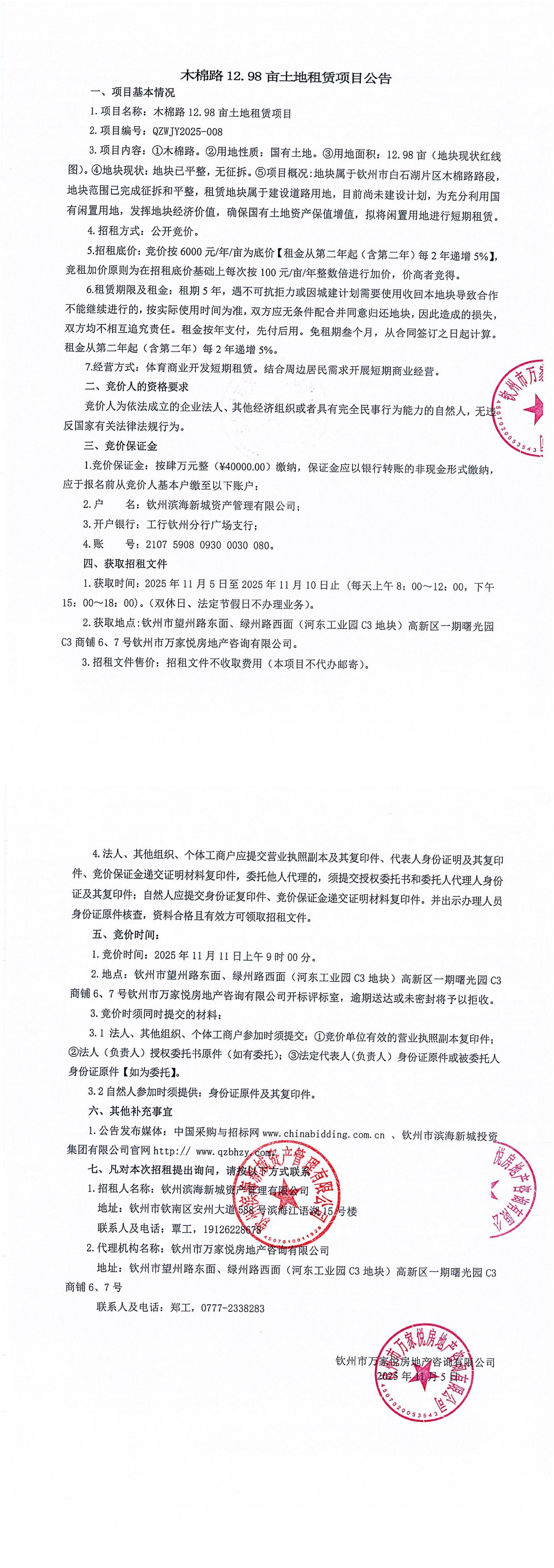 木棉路12.98畝土地租賃項目公告