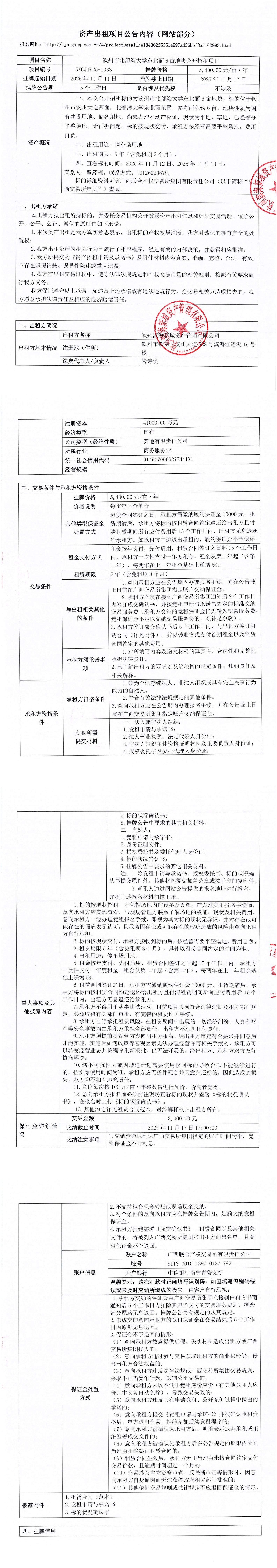 欽州市北部灣大學(xué)東北面6畝地塊公開招租項目