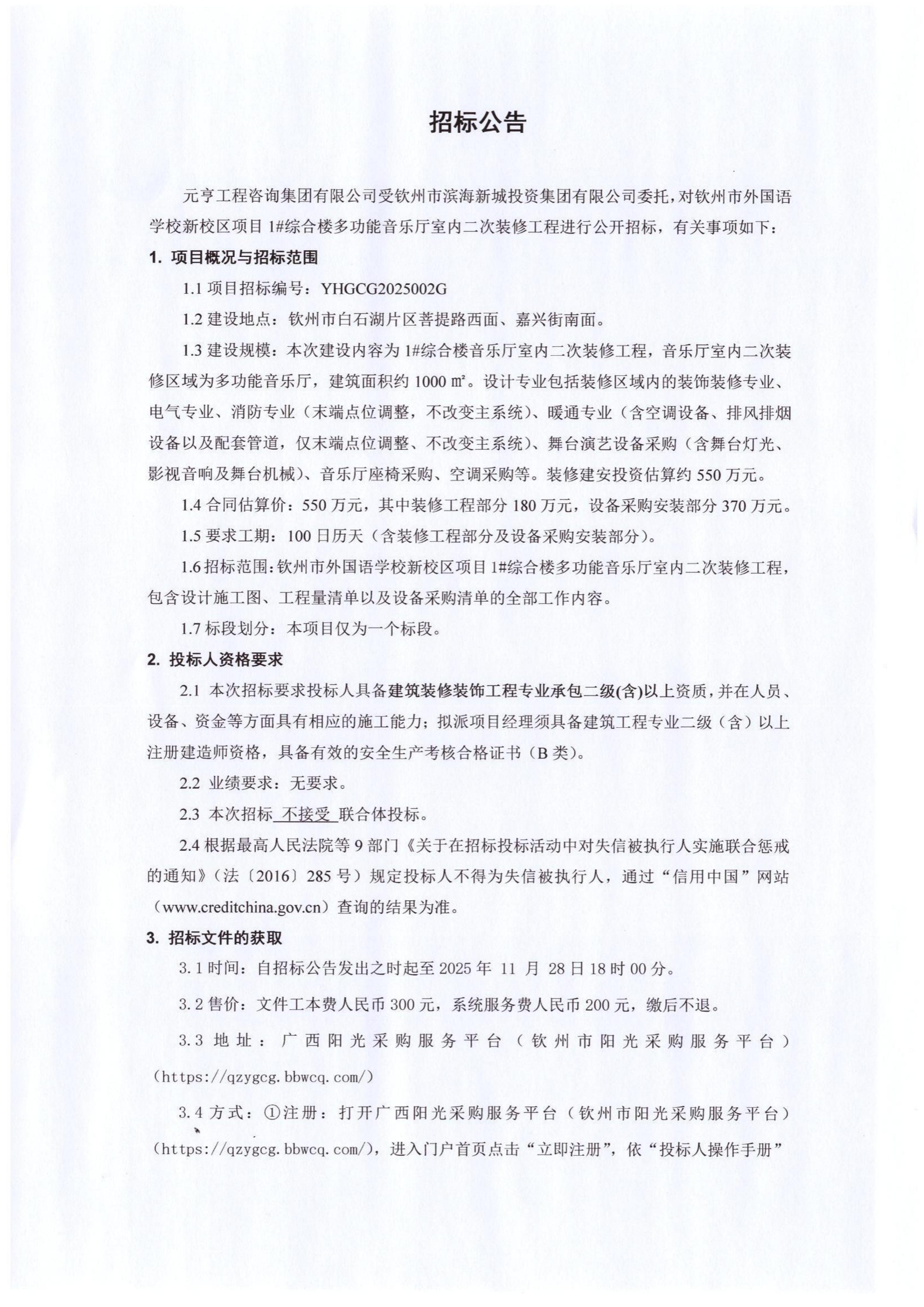 欽州市第二中學蓬萊校區一期項目(重)施工招標公告