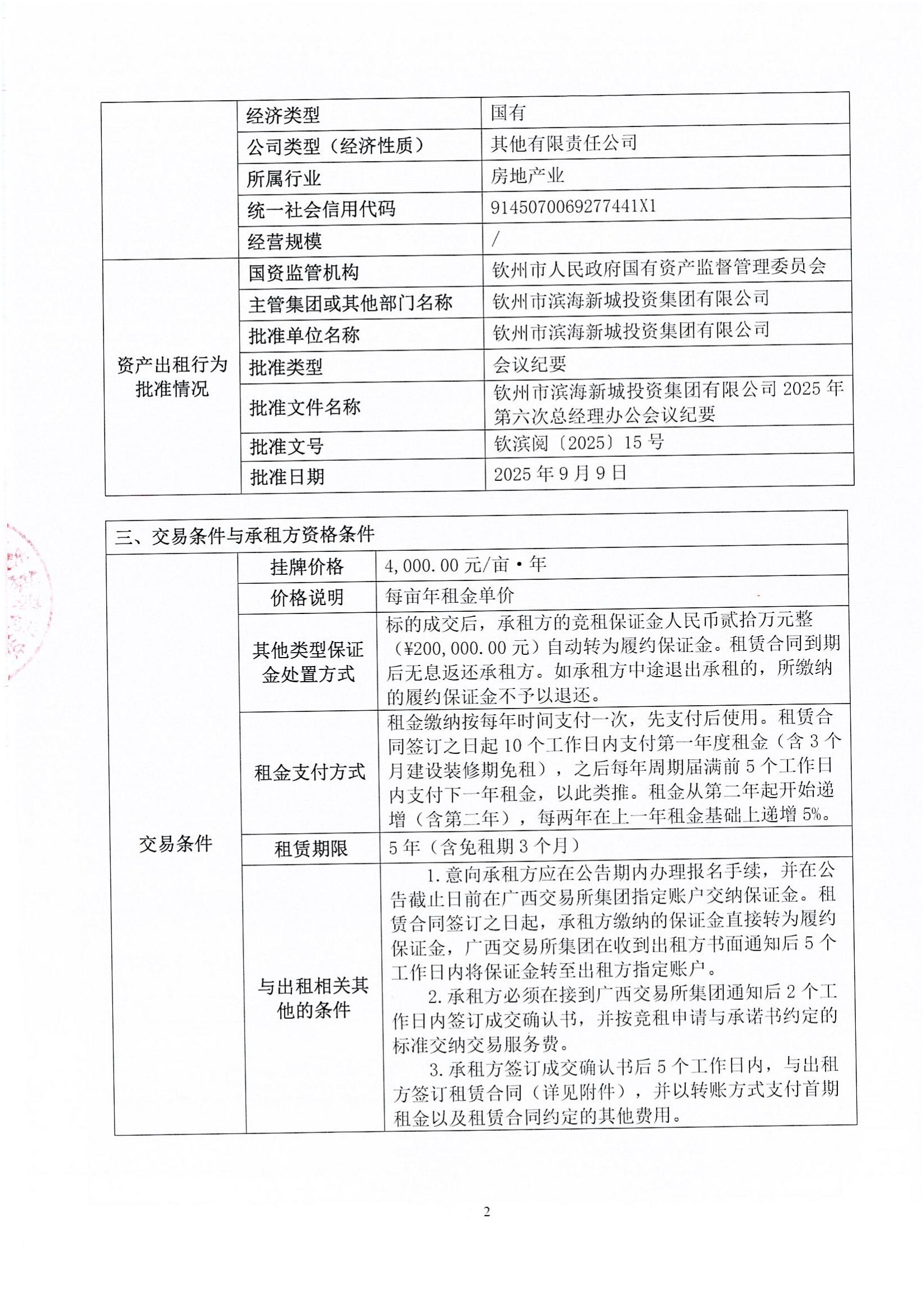 欽州市欽南區揚帆大道與龍海路交匯處西北角地塊公開招租項目