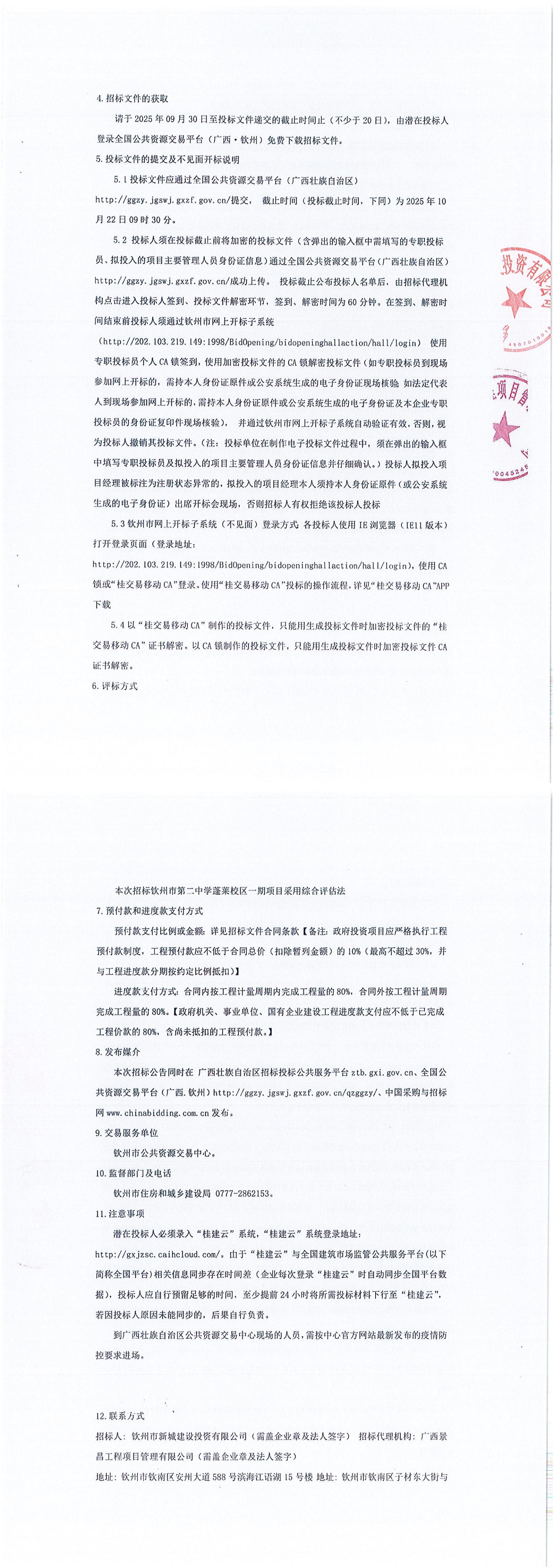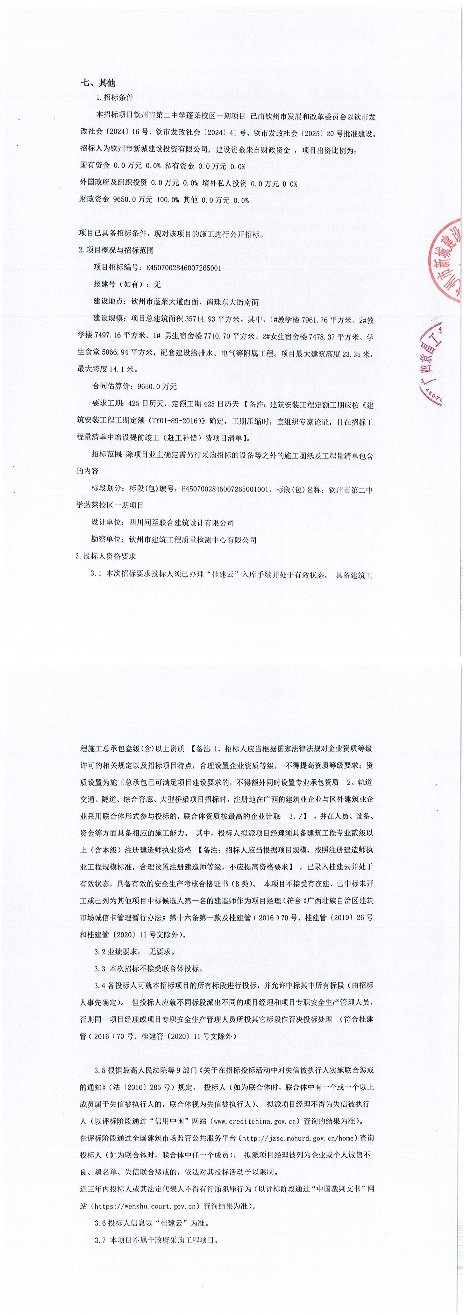 欽州市第二中學蓬萊校區一期項目(項目招標編號:E4507002846007265001)更正公告(一)