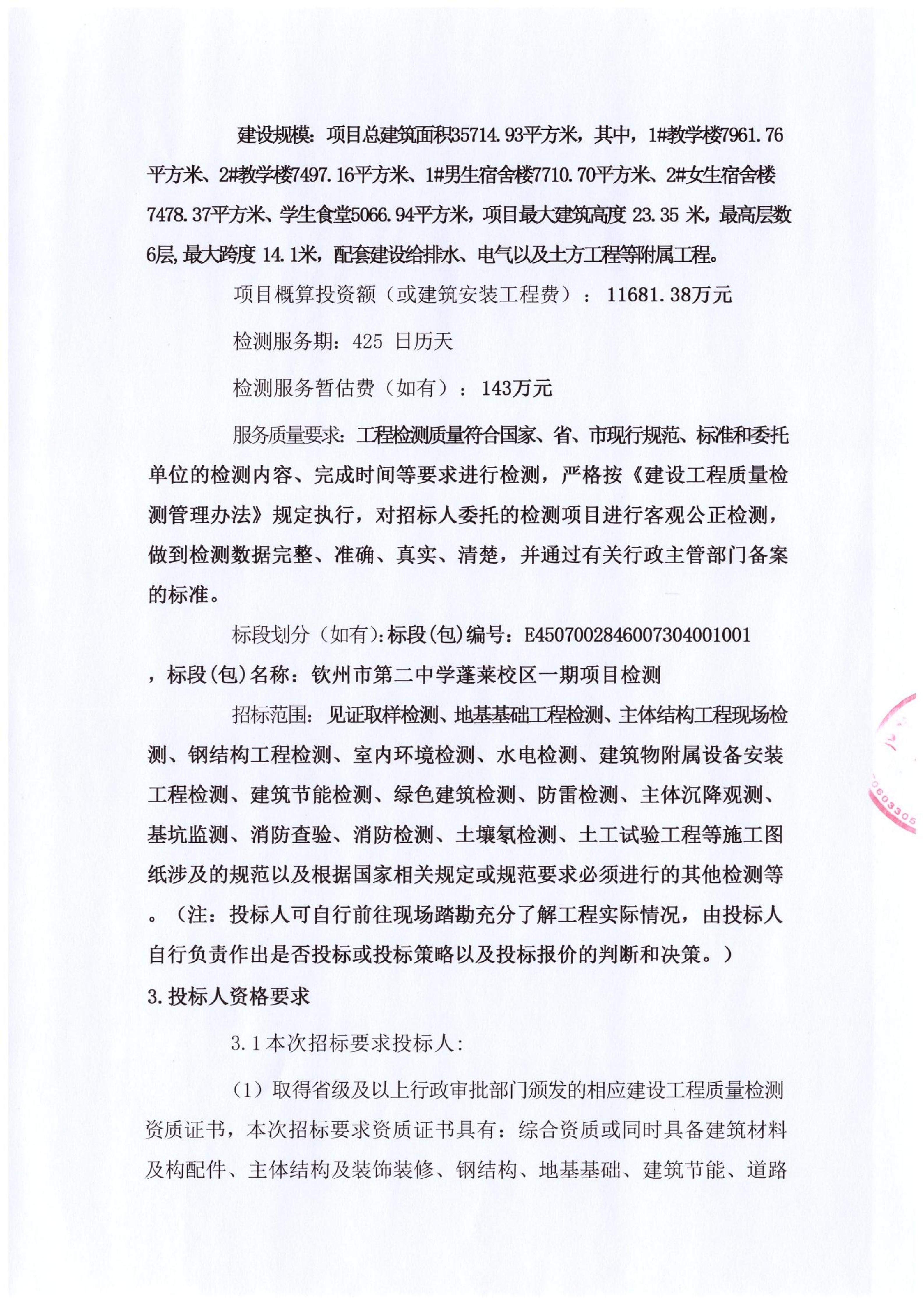 欽州市第二中學蓬萊校區一期項目檢測工程檢測招標公告