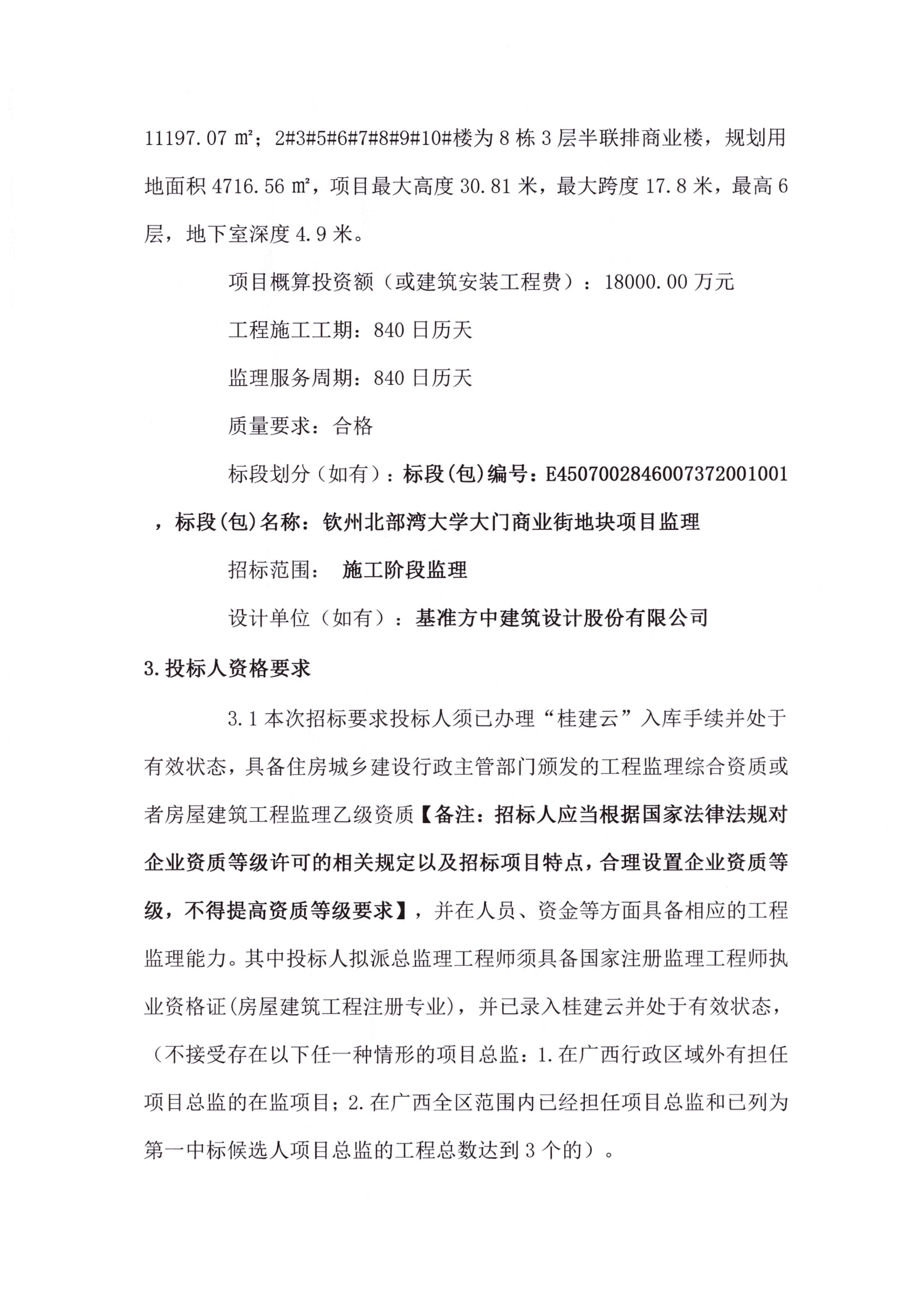 欽州北部灣大學大門商業街地塊項目監理招標公告